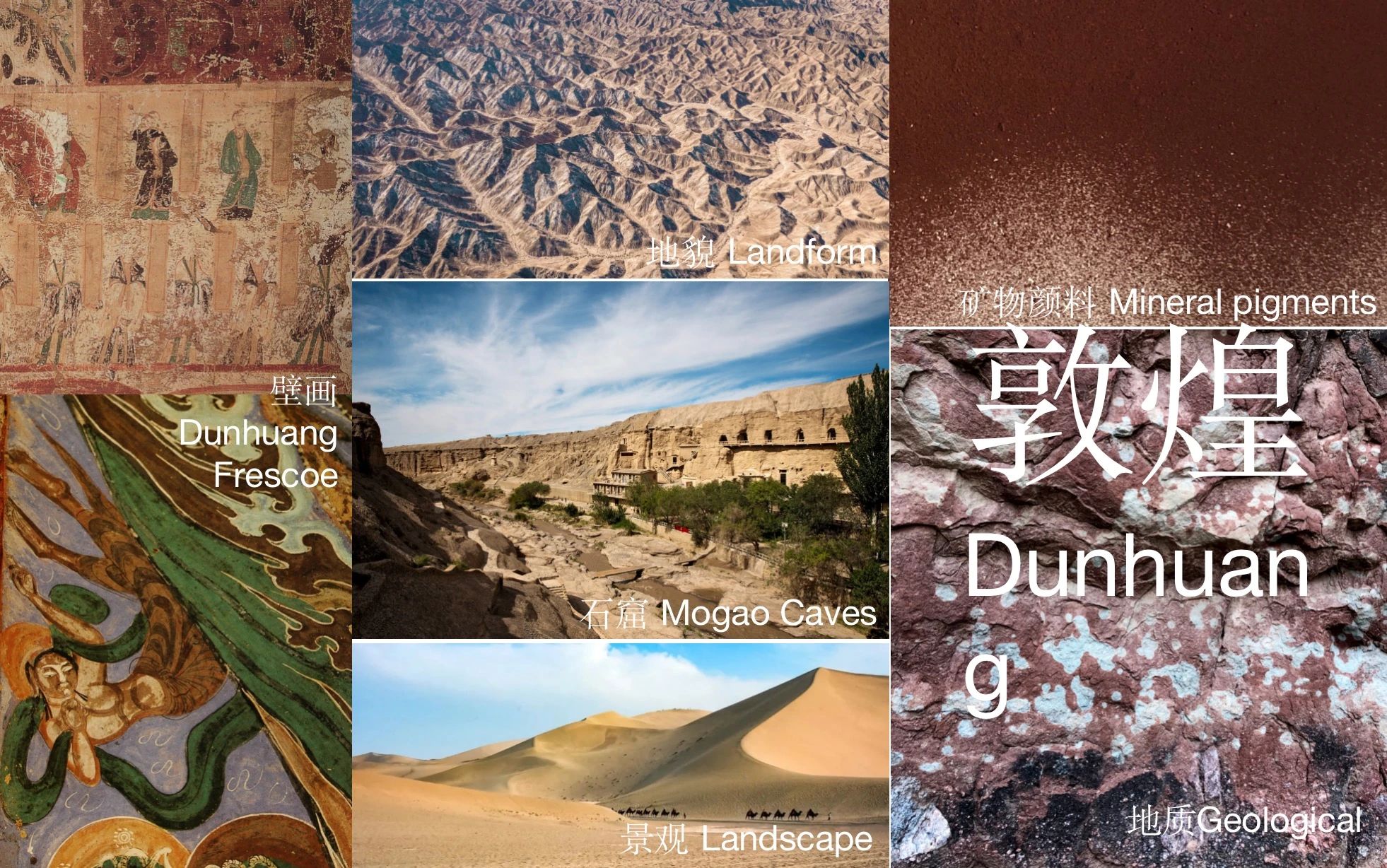 段丽莎老师以“敦煌色彩系统研究”为例,在深入研究的过程中,采集了来自宕泉河老河床沉积的澄板土(敦煌土黄)、三危山的赭黄、赭红、赭褐等天然泥土颜料,结合矿物颜料、植物染料等色样,如孔雀石、雄黄、雌黄、氯铜矿、胭脂等,采集颜料原石原料、复原颜料制作过程,制作相关色卡色样,形成研究团队对敦煌色彩系统的最终定义与色卡成果,便于产品设计师在色彩设计中的应用与转化。